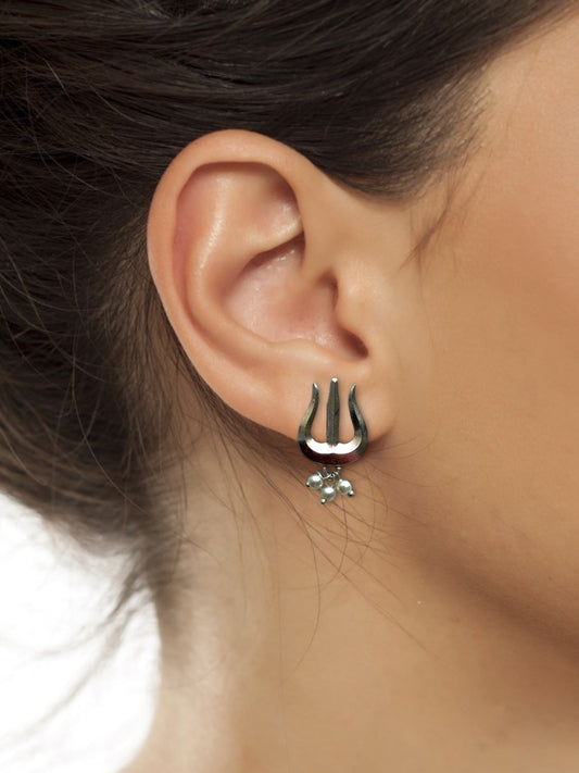 Silver Lookalike Self-Engraved Pearl Embedded Stud Earrings