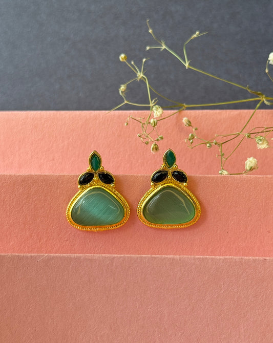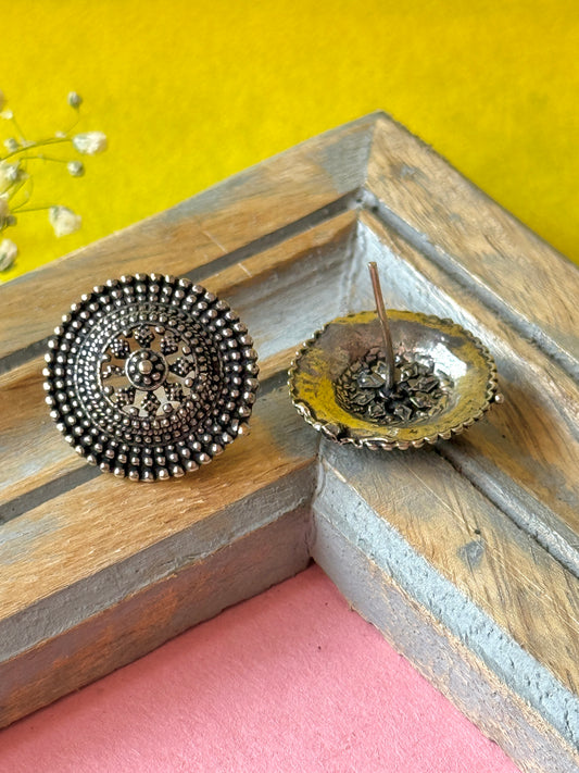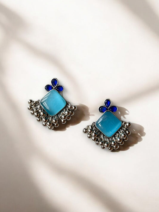 Oxidised Stone Work Earrings – Elegant Vintage Charm