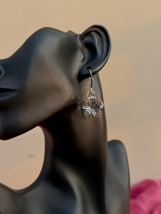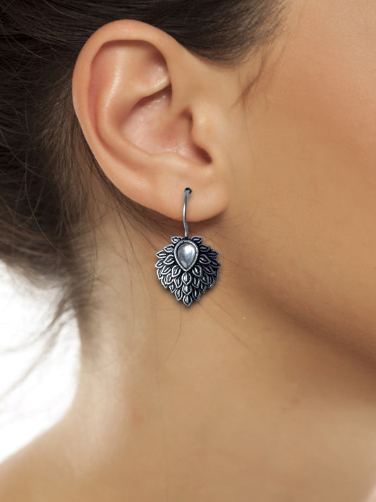 Sterling Silver Leaf Petal Drop Hook Earrings | 925 Sterling Silver
