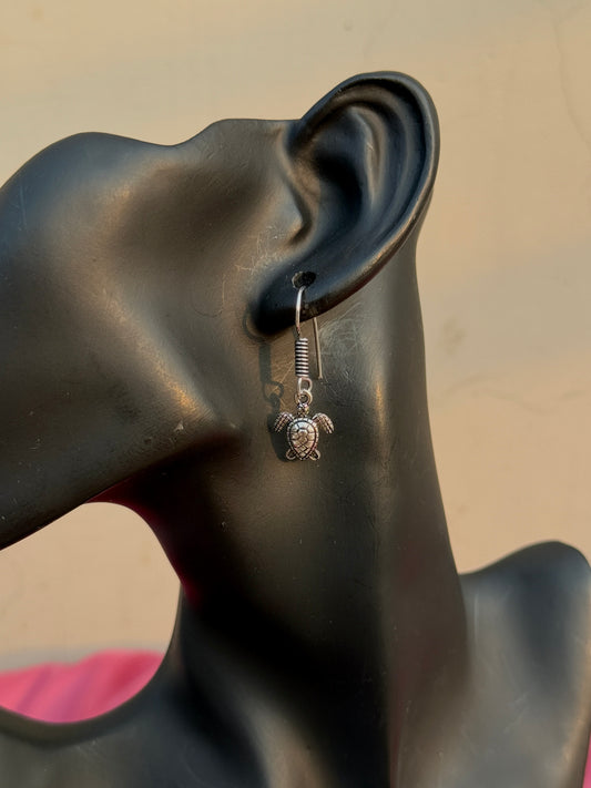 Sterling Silver Tortoise Drop Earrings | 925 Sterling Silver