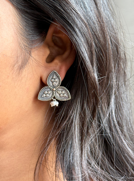 Small Oxidized Embedded Stud Earrings – Minimal Elegance for Everyday Wear