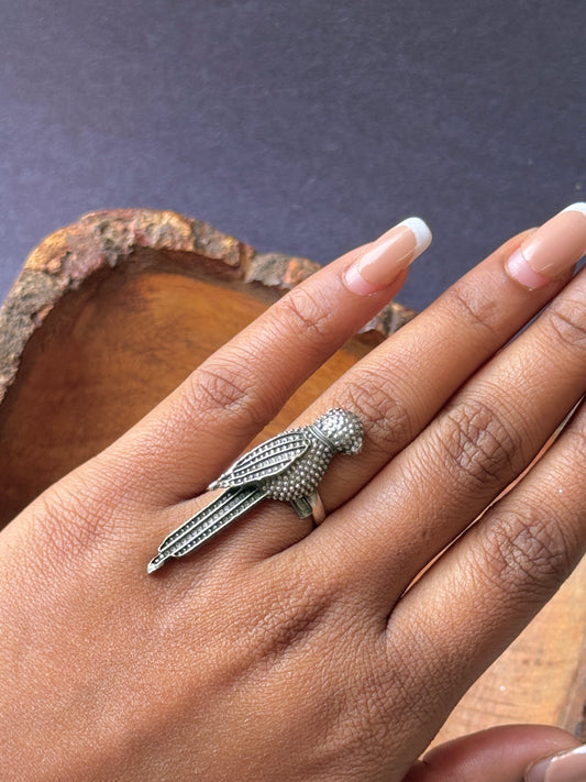 Parrot-Inspired Adjustable Finger Ring – Nature Statement Design