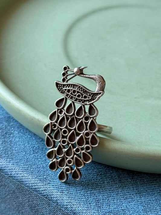 Double Peacock Self-Engraved Oxidised Earrings for Women