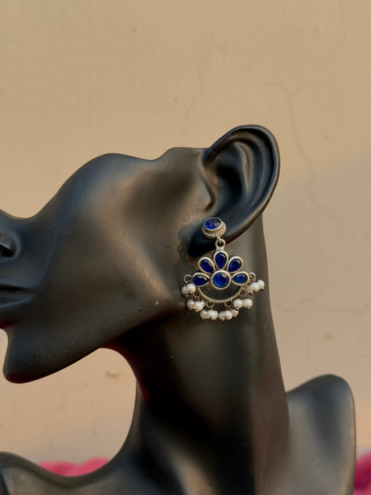 Silver Replica Silk Stone Embedded Earrings with Pearls