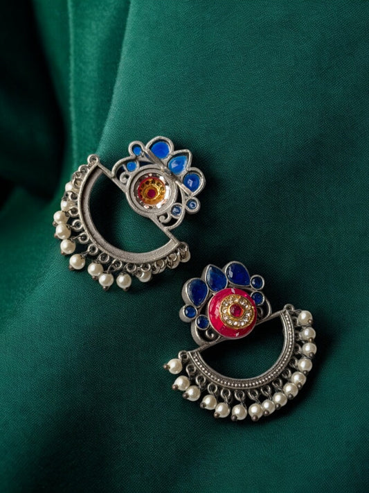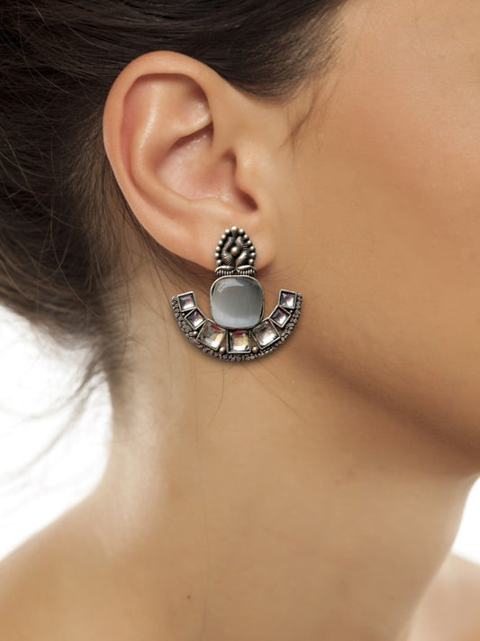 Silver Replica Earrings with Embedded Stones
