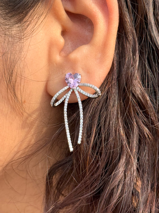 Silver-Plated Bow Earrings Embedded with AD Stones | Anti-Tarnish