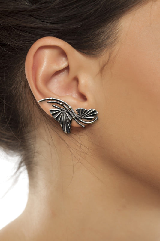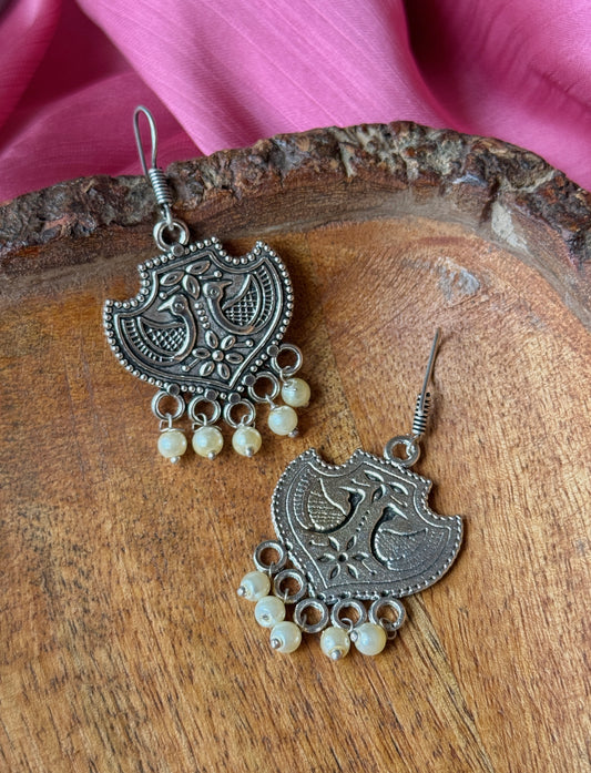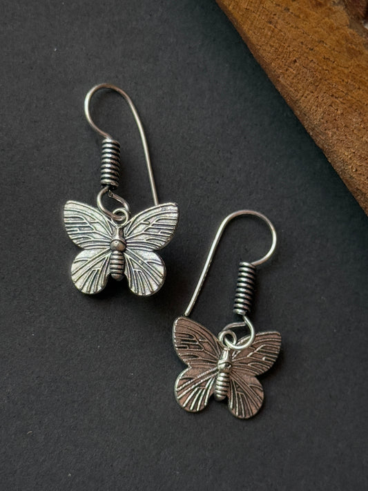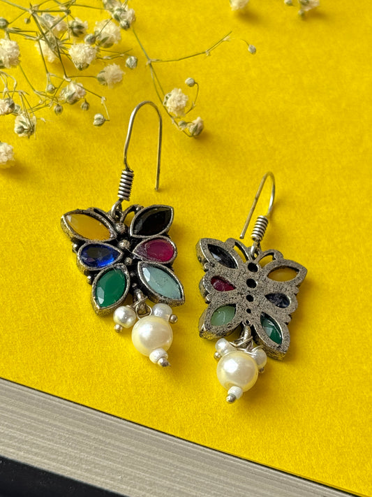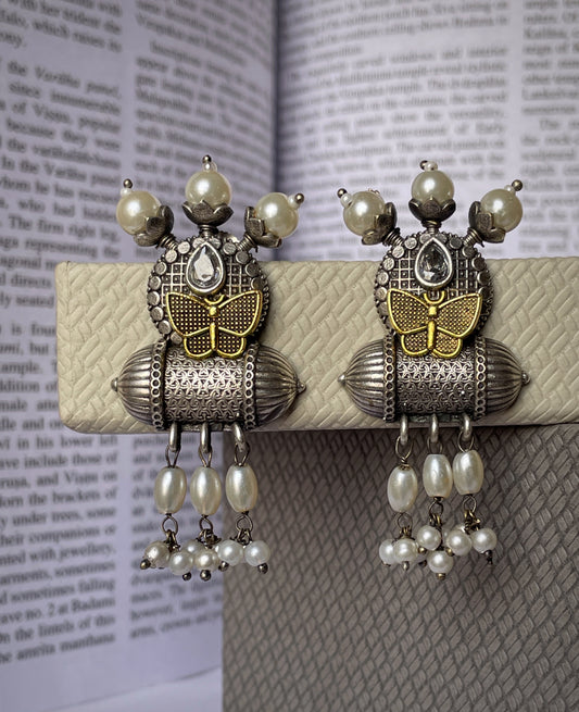 Butterfly Silver-Plated Drop Earrings with Pearl