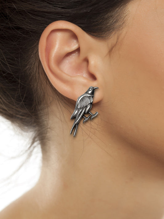 Double Peacock Self-Engraved Oxidised Earrings for Women