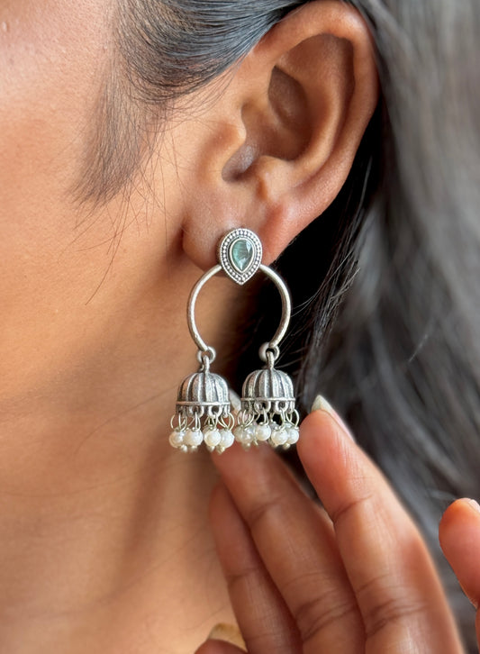 Dangling Peacock Engraved Oxidised Earrings for Women
