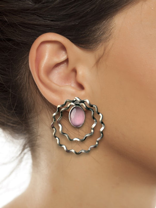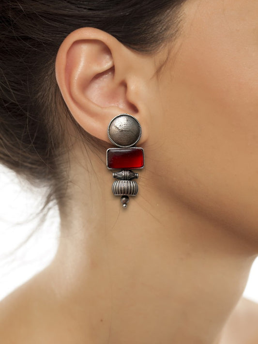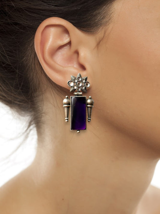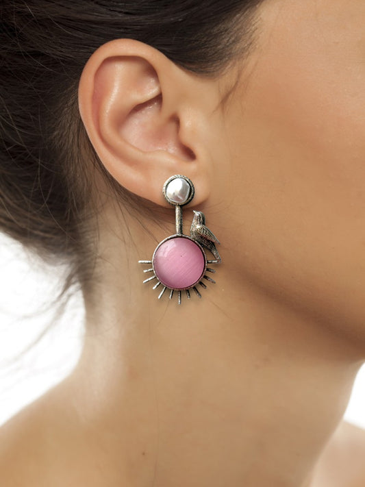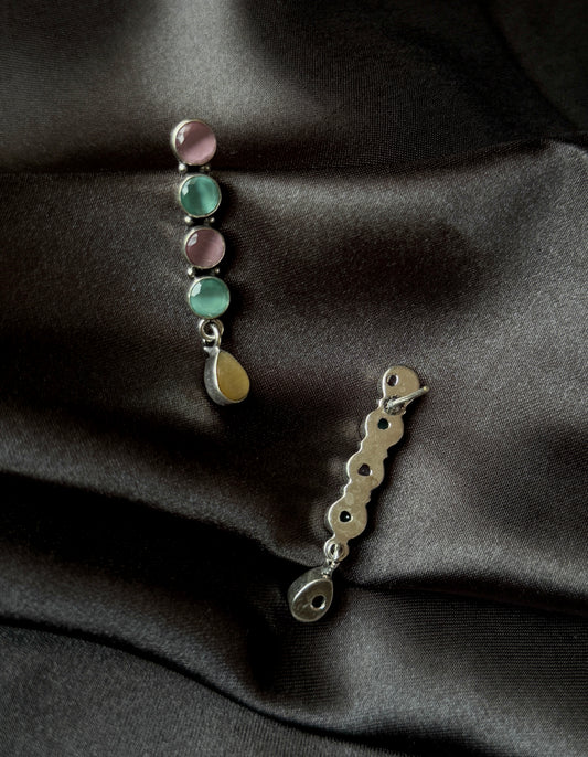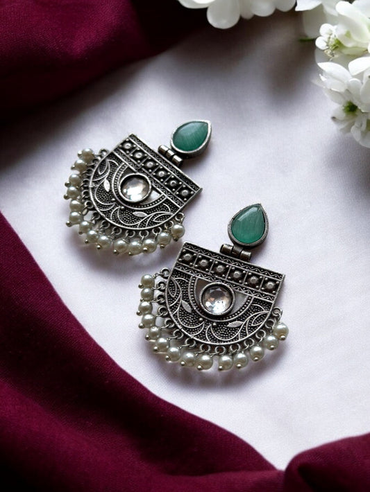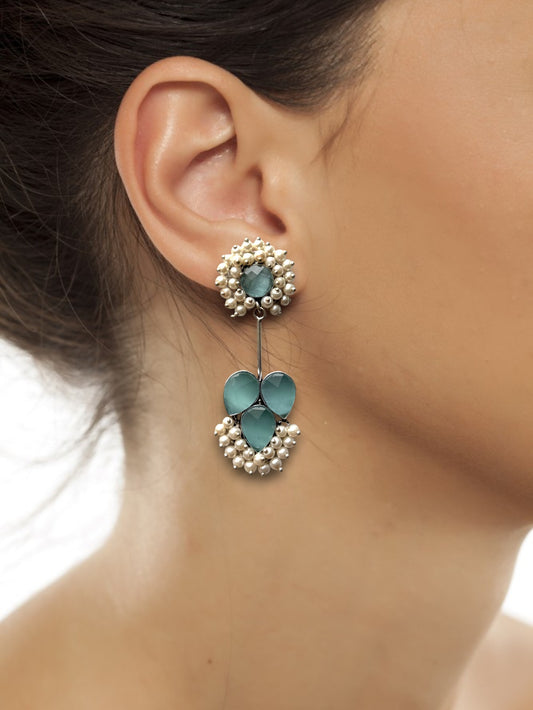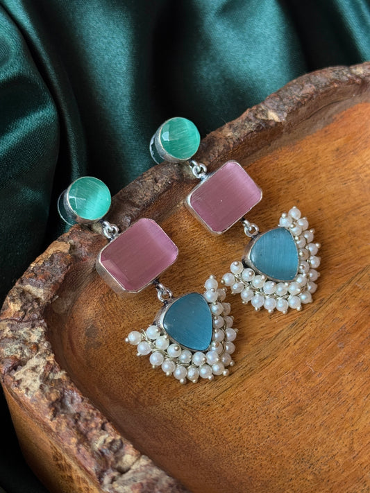 German Silver Contemporary Pearl and Stone Drop Earrings