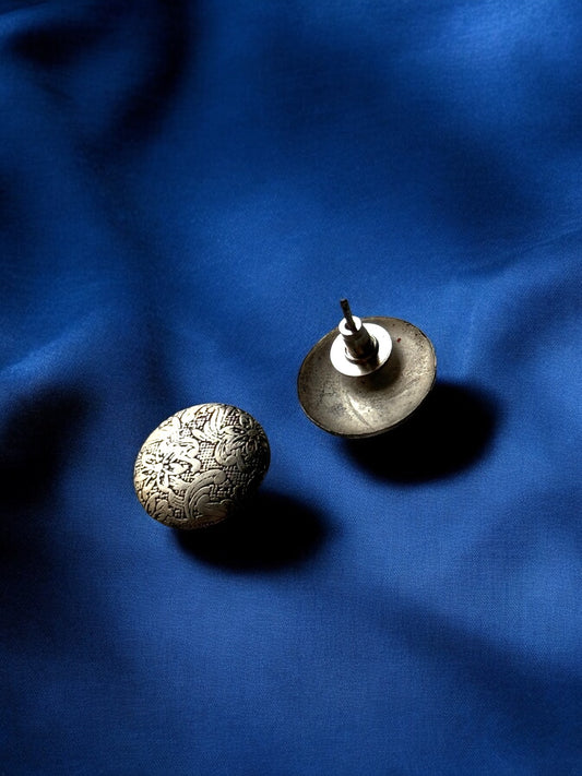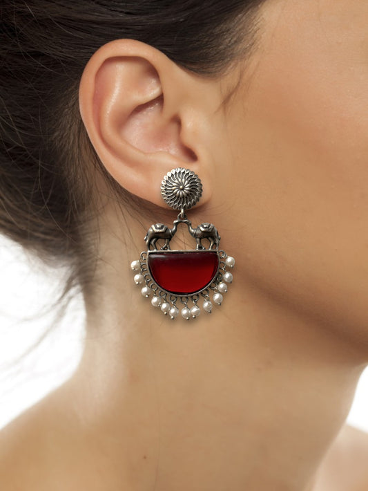 Silver Replica Elephant Engraved Earrings with Dangling Pearls