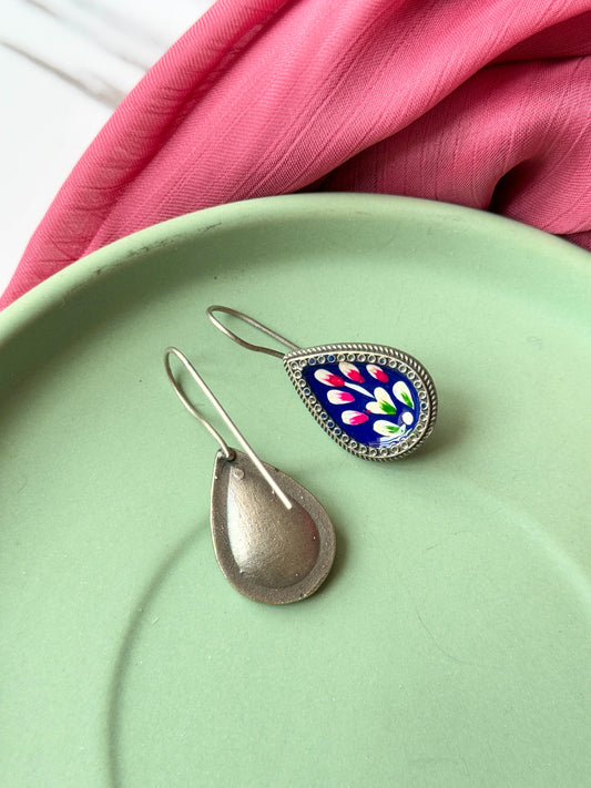 Dark Blue Hand-Painted Hook Earrings | Artisanal Elegance