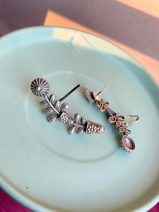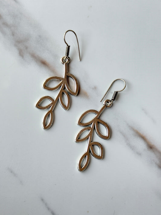 Sterling Silver Leaf Petal Drop Hook Earrings | 925 Sterling Silver