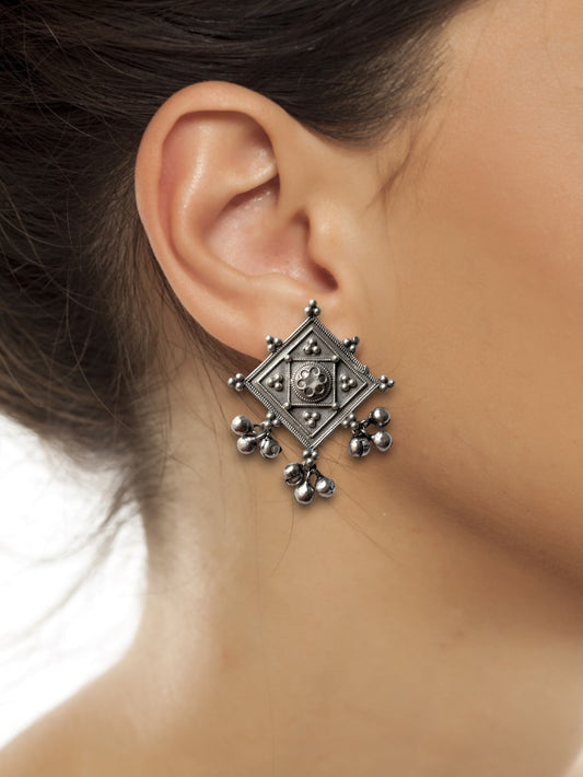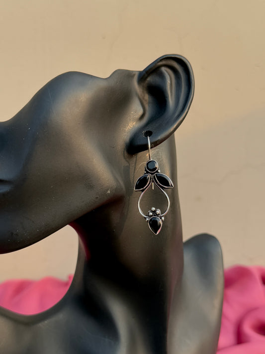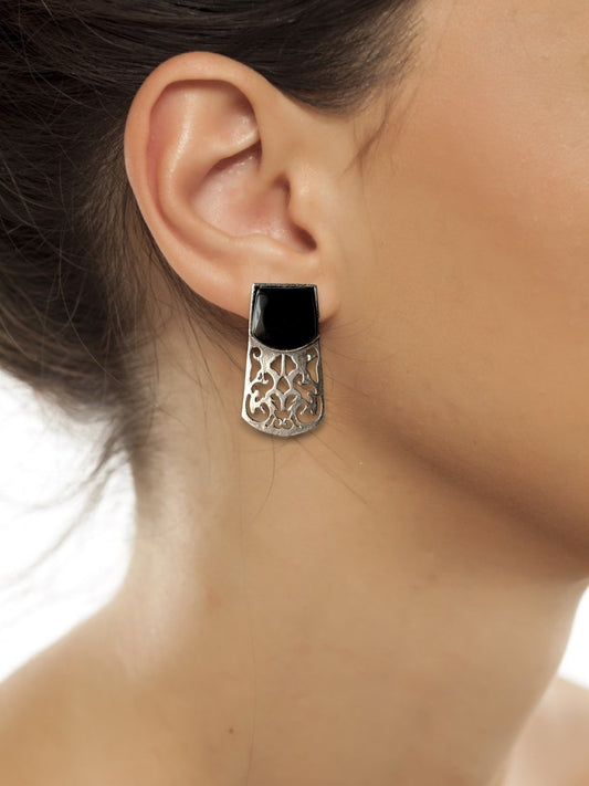 German Silver Black Stone Embedded Statement Earrings
