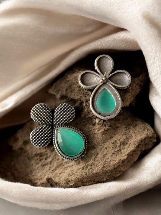 German Silver Flower Embedded Monalisa Stone Stud Earrings