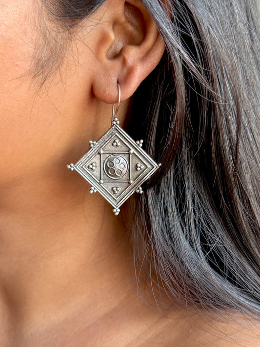 Silver Plated Oxidized Dangling Earrings