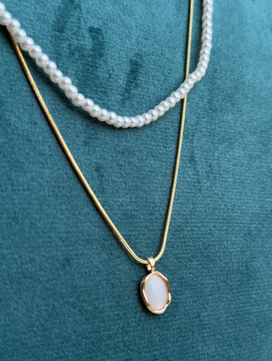 Pearl Two-Layered Chain Statement Classic Necklace