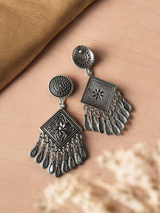 Oxidised Stone Work Earrings – Elegant Vintage Charm
